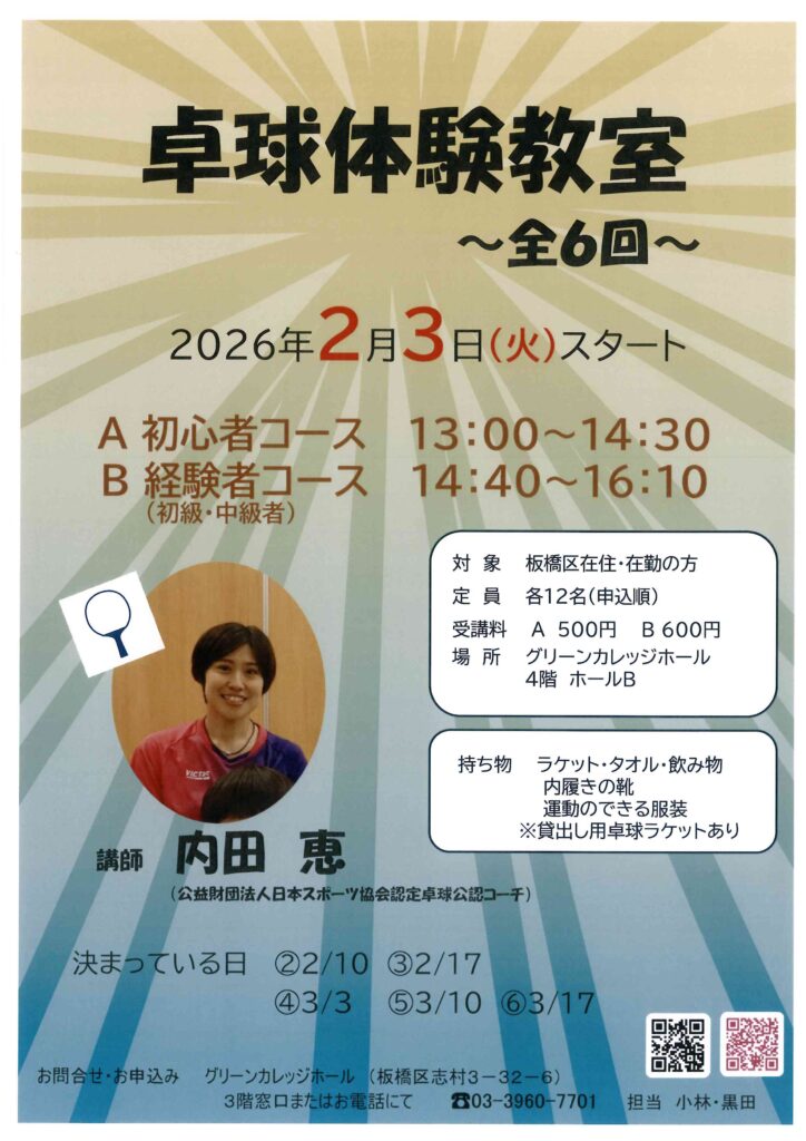 卓球体験教室~全6回~🏓定員ため受付終了いたしました🙇
