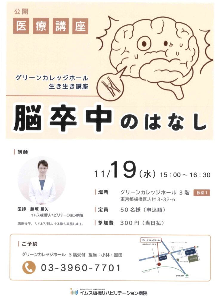 生き生き講座 ~脳卒中のはなし~ 生徒募集開始