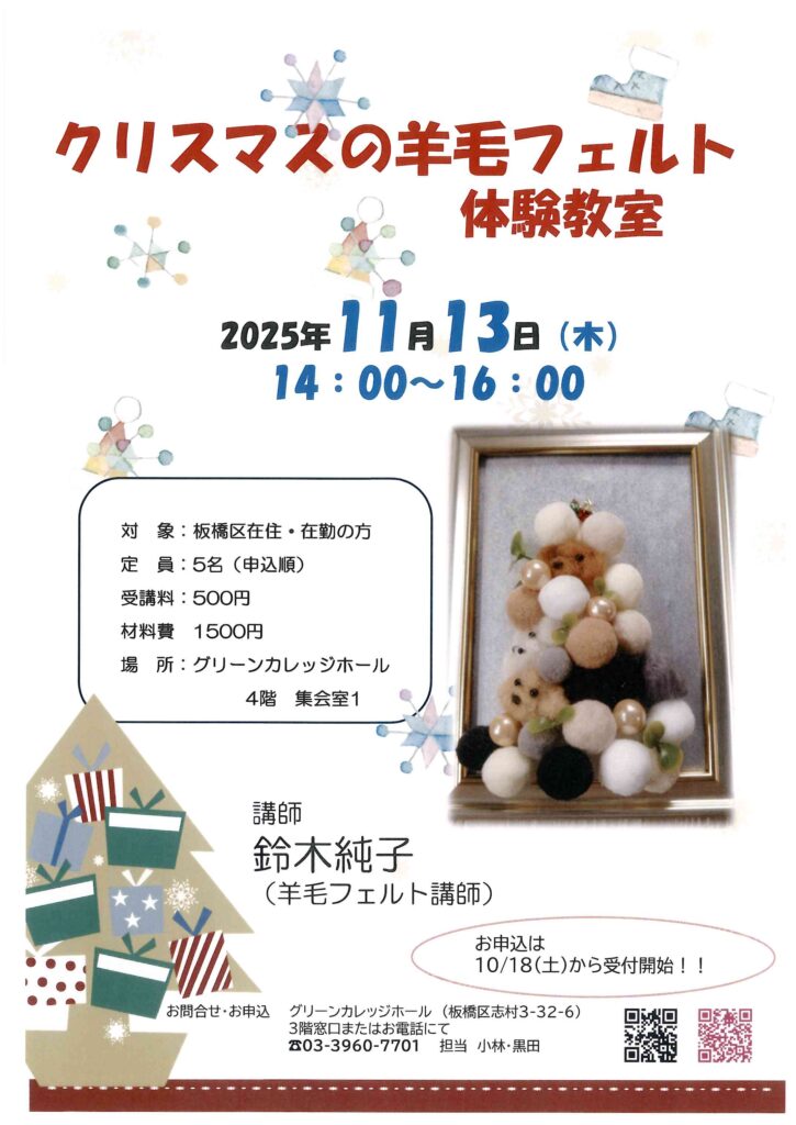 🎄クリスマスの羊毛フェルト体験教室🐑…🐑…生徒募集